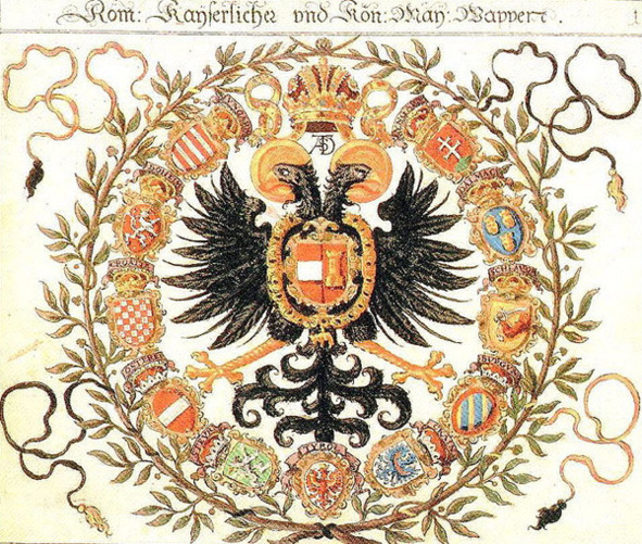 Флагом Священной Римской империи, которой правили Габсбурги, было желтое полотнище с изображением герба империи – черного двуглавого орла, поэтому к средине XVIII в. желтый и черный цвета флага Священной Римской империи стали считаться и официальными цветами австрийских земель.
