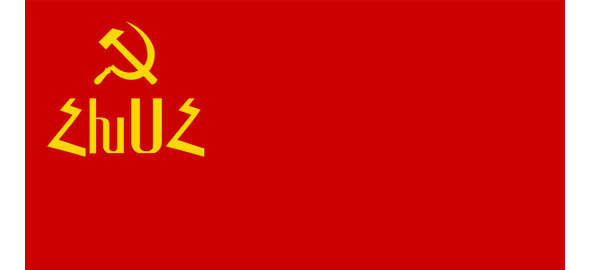 23 марта 1937 г. была принята новая Конституция Армянской ССР, в статье 121 которой сказано, что флаг республики представляет собой красное полотнище (пропорции 1: 2), в левом верхнем углу которого помещены золотые серп и молот, а под ним – сокращенное название республики армянскими буквами.