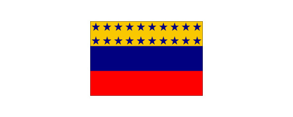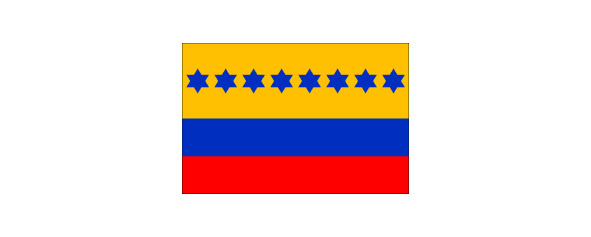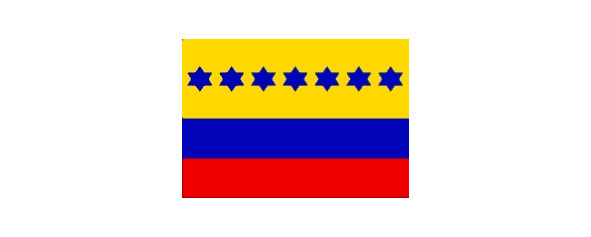 Однако, из-за сложности изготовления такого флага в 1816 г. был учрежден другой – желто-сине-красный с изображением семи синих шестиконечных звезд на желтой полосе, символизировавших провинции страны: Каракас, Куману, Барселону, Маргариту, Трухилью, Баринас и Мериду.
