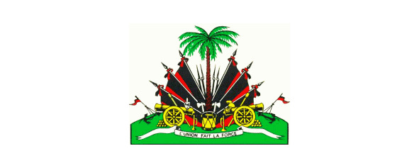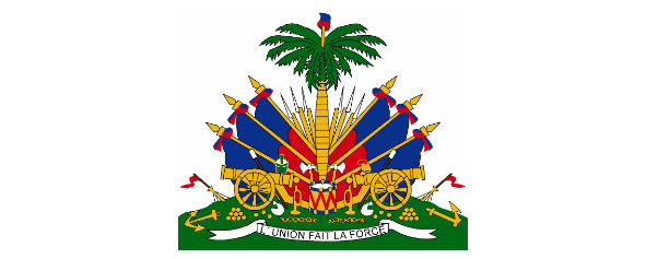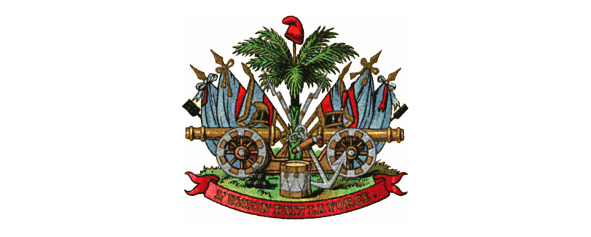 На зеленом подножии герба, символизирующем Гаити, натурального цвета пальма, увенчанная красно-синим фригийским колпаком – символом свободы; у подножия пальмы – барабан, пушки, знамена, винтовки и якорь. Эти предметы напоминают об освободительной борьбе за независимость и об открытии острова Христофором Колумбом в 1492 г. Внизу основания расположена серебряная лента с девизом времен борьбы за свободу: «L’UNION FAIT LA FORCE» («Согласие делает сильным»).