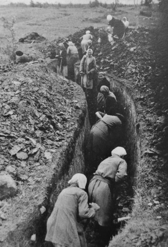 Женщины оккупированной Беларуси работают на немецкой оборонительной линии. Оперативный сектор немецкой 3-й танковой армии, 1944 г. Источник: «Verbrechen der Wehrmacht. Dimensionen des Vernichtungskrieges 1941—1944». Hamburger Edition, 2012.
