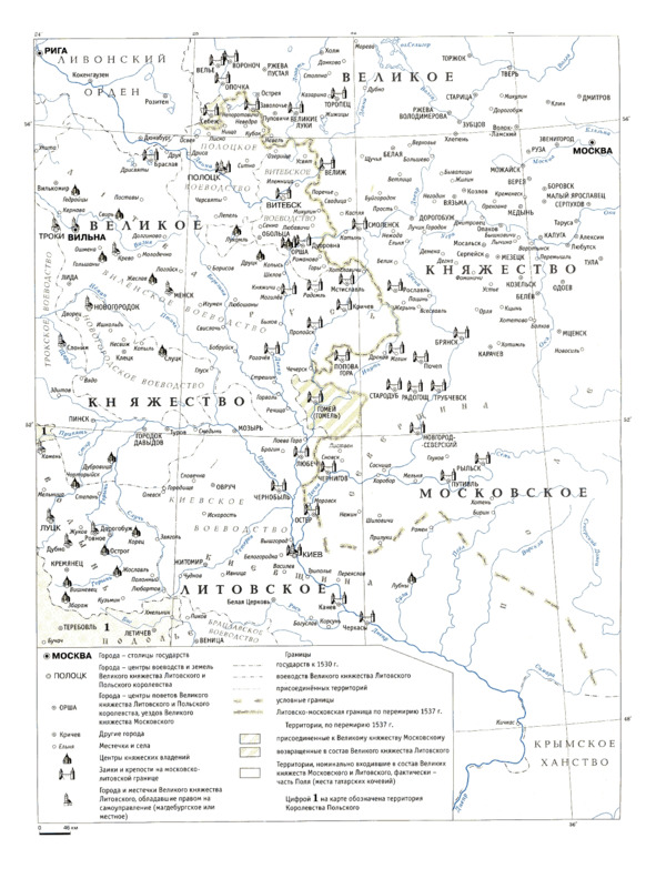 Замки на границе Великого княжества Литовского с Великим княжеством Московским в 1530-е гг. Карта Виктора Темушева.