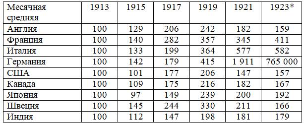 Во время и после войны реальная стоимость денег понизилась в Англии приблизительно наполовину, во Франции – в восемь раз, в Италии – в двенадцать раз, почти всякую ценность деньги потеряли в Германии, в государствах, образовавшихся на месте бывшей Австро-Венгерской монархии, и в России.