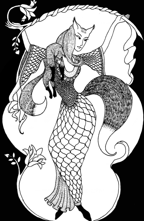 Солнце зашло за горизонт и в комнате сумрак. Мастер Кнут подходит к первому холсту и снимает с него покров. На холсте изображена женщина. Она обнажена, стоя спиной к тому, кто на нее смотрит. Над обнаженными бедрами поднят вверх лисий хвост. Лицо женщины повернуто вполоборота на смотрящего. Ее лицо невозможно описать. На нем сладострастие, и коварство, и хитрость, и притягивающий к себе магнетизм, исходящий от нее. У Ганса начинает кружиться голова. Кажется, что ее образ начинает оживать, и вот-вот сойдет с холста.
