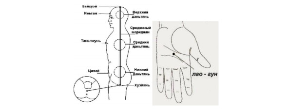 – Таньчжун – точка расположена на срединной линии грудины, на уровне четвертого межреберья.