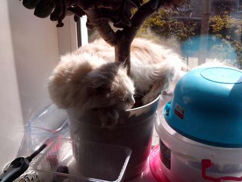 – Не надо меня фотографировать! Не видишь животное устало и непричесанное к тому же, отдыхает после встречи Нового года. Кстати кошки были так себе, не то, что в мае месяце.