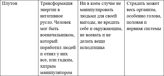 ПлутонБог подземного царства Аид, он же Плутон, является проводником из мира живых. Здесь правят энергии трансформации – как личности, так и человечества в целом. Манипуляция и власть – два обличия планеты, которая окутана тайной и мистическими мотивами. Сильное положение Плутона позволяет человеку читать других людей, угадывать их мысли и желания, играть на этом и получать, что надо.
