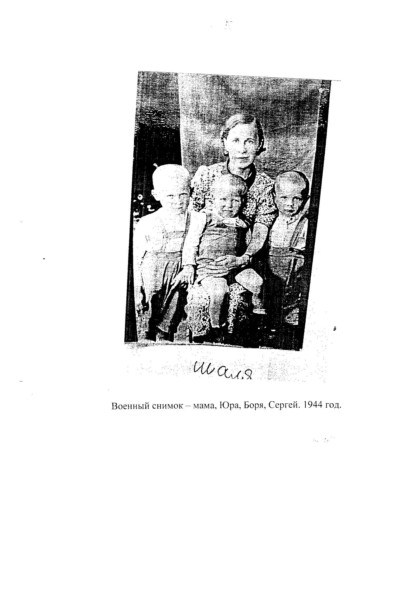 Некоторые эшелоны с Запада делали остановки в Шале. Из них выгружали больных и иногда мертвых детей. Про эти эшелоны говорили: «Из Ленинграда». Для детей, эвакуированных из Ленинграда, был открыт детский дом. Взрослые из эшелонов просили еды. Жители Шали что-то давали им. Эшелоны уходили на Урал, в Свердловск, в Сибирь. Некоторых взрослых снимали с поездов и подселяли к местным жителям. В нашу квартиру, состоящую из двух комнат, подселили врача Лену, эвакуированную из Ленинграда. Ей очень понравился мой старший брат Юра, и она просила мать полушутя- полусерьезно отдать его ей на усыновление. Лена патронировала Юру, и когда он болел, она ночью дежурила вместе с матерью возле него.