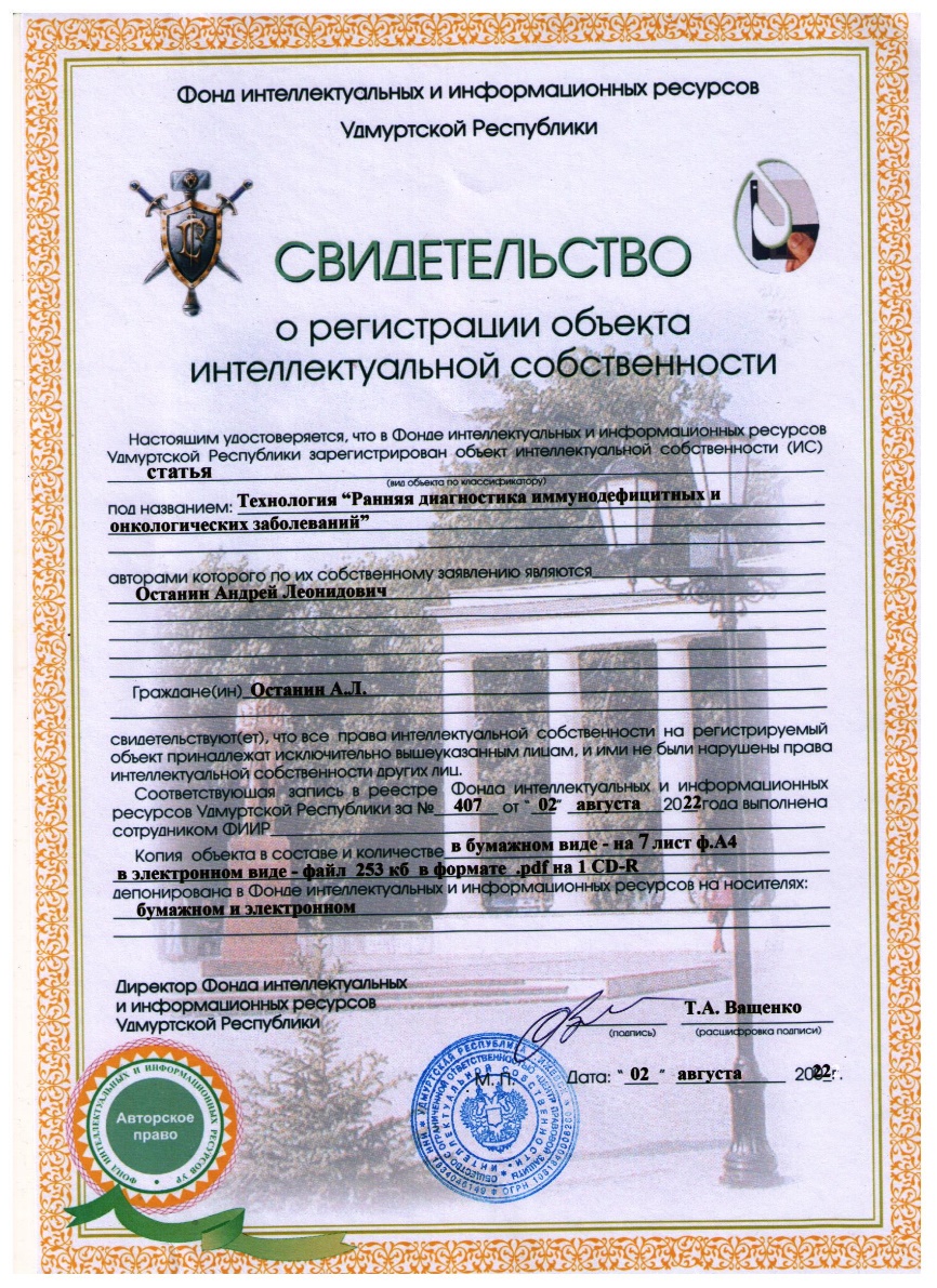 Из выше указанного можно сделать вывод 1: ранняя диагностика с помощью онкомаркеров в корреляции с определенным уровнем иммунодефицитных состояний позволяет получить достоверную и своевременную диагностику состояния пациента на наличие потенциальных и реальных онкологических процессов в его организме.