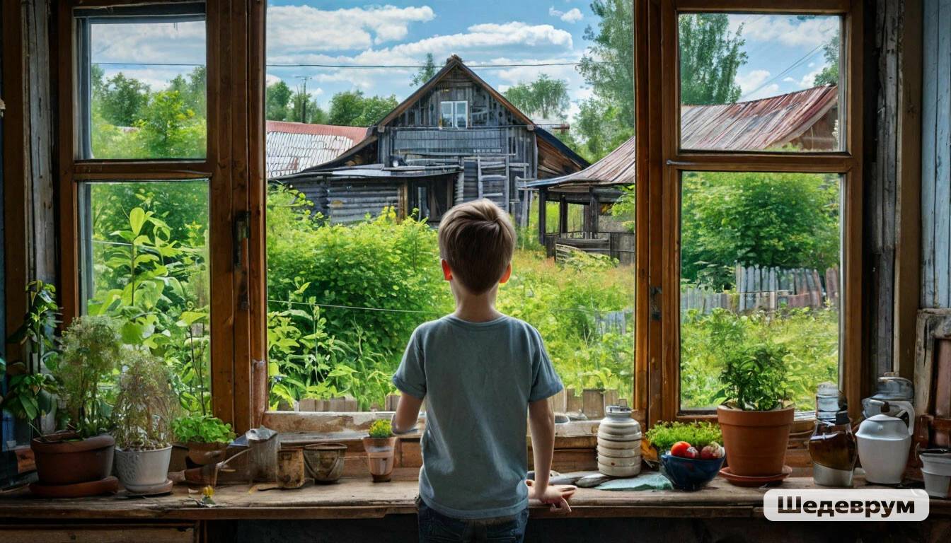 Зашла соседка, бабушка Латышева. Села у окна, смотрит