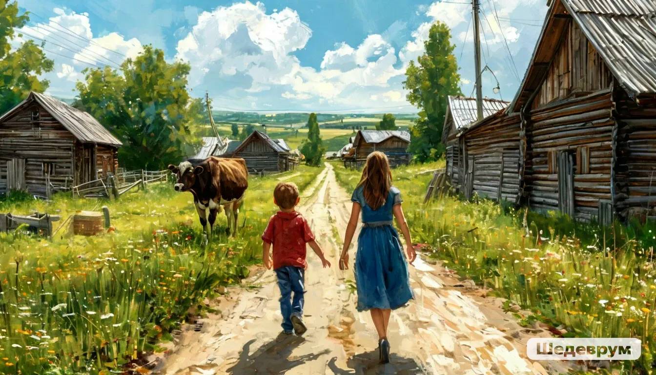 Идём с ним домой. Вдоль городского парка. Гоним корову, купленную у какой-то знакомой. Решила я его с Танькой хоть молоком подкормить. Время трудное было. Идём мимо магазинчика.