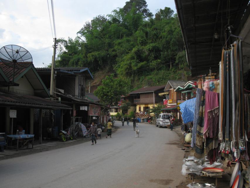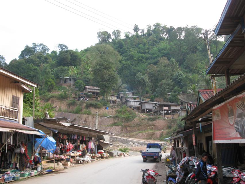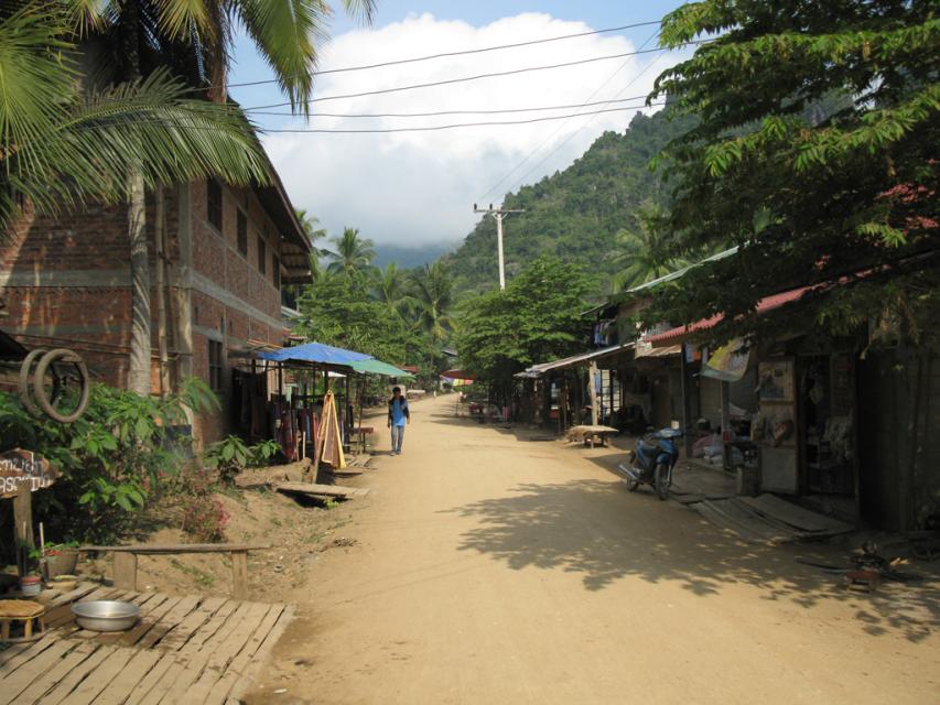 Путь лежал через нищие деревни, где люди на дороге продают всякую ерунду. Если стоят, значит, кто-то покупает. Въехали в большую, более благоустроенную деревню: ее благополучие зависит от количества желающих увидеть пещеру Будды. Вдоль улицы что-то жарили и продавали.