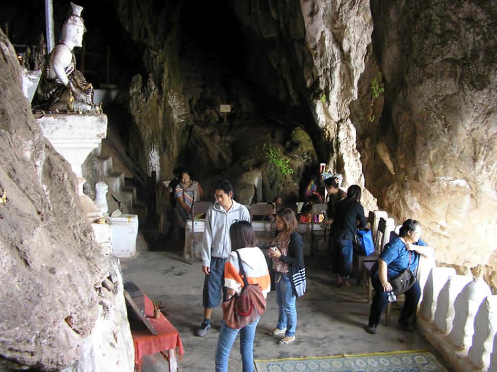 Несметное количество лодок ждали путешественников. Не за бесплатно толпы жаждущих впечатлений переплывали реку. А на другом берегу следующие Остапы Бендеры требовали оплату за осмотр. Только у Ильфа и Петрова мечтали увидеть провал, а здесь – пещеру, к которой держатели билетов не имели никакого отношения. Сущность вопроса сводится к тому, что нельзя выбрасывать статуи Будды, поэтому в старой пещере сделали просто склад. Многие из них просто лежали (то есть, валялись) как попало. Название романтичное – «Пещера тысячи Будд». Многие, осмотрев этот склад, спускались к реке и возвращались на другой берег. Но Винай предупредил Катю о второй пещере, к которой вела хорошая высокая лестница. Вроде бы там жили два монаха. Очень убого и аскетично: статуя Будды и в углу какие-то тряпки, возможно, место для сна.