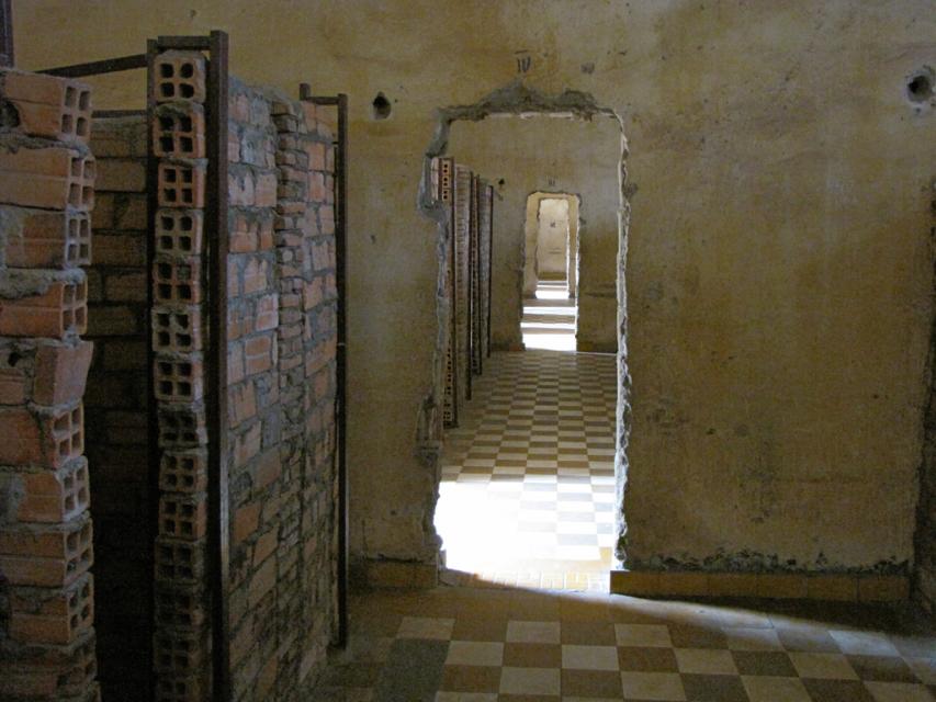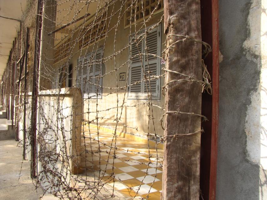 Оказывается в тюрьме Туол Сленг от страшных пыток погибло 17000 человек. Интересно, что под это кровавое заведение отдали здание школы. Говорят, садисты, работавшие там, были душевнобольными. Страшный способ перевоспитания.
