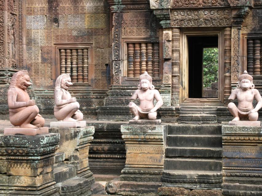 Храм Бантей Срей – уникальный храм кхмеров, построенный из розового песчаника и богато украшенный утонченной резьбой по камню.
