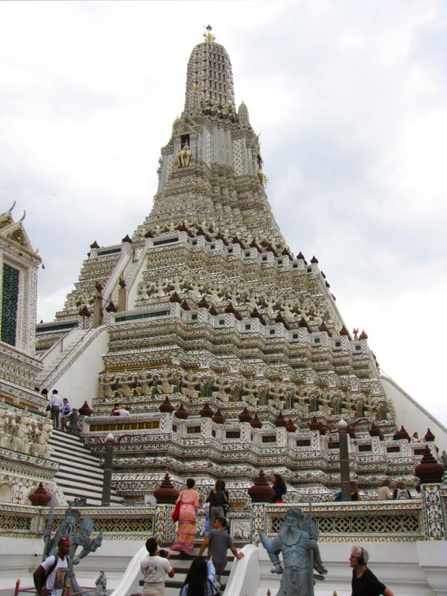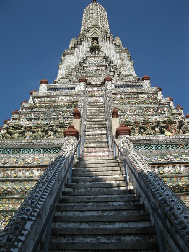 Крутые лестницы главной пагоды ведут к террасам. Если подняться на вершину, то можно увидеть Бангкок с высоты птичьего полета.