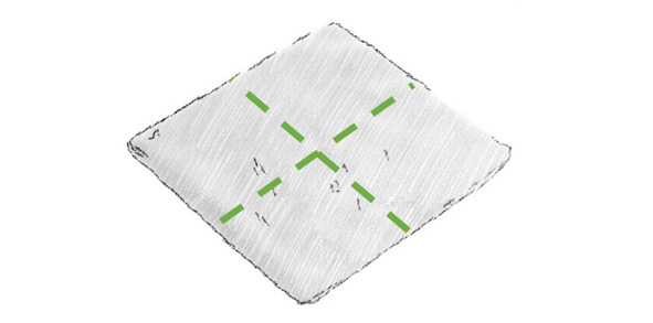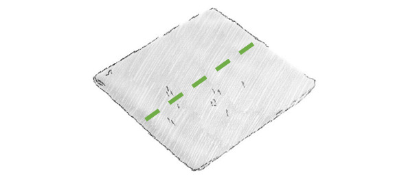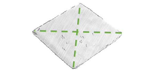 Размещаем салфетку на столе перед собой таким образом, чтобы штрих разметки начинался в нижнем левом углу и приходил в верхний правый. Поворачивайте медленно салфетку, пока рисунок штриха не будет соответствовать правильному расположению.