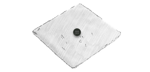 – Правой рукой зажимаем правый верхний угол и накладываем его на пуговицу.