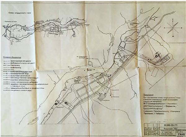Как сказано выше, проект постановления Совета Министров СССР, подготовленный в июле 1985 года Хабаровским краем, не был подписан. Но все-таки в 1985 году появился другой документ, подписанный 15 ноября: «Схема ситуационного плана – схема размещения на местности Амурского завода азотных удобрений, план нового города, проектируемая железная дорога, ЛЭП и размещение других внешних инженерных коммуникаций»[21]. Подпись поставил главный инженер проекта – Святослав Кириллович Силкин, работавший тогда в Государственном ордена Трудового Красного Знамени научно-исследовательском и проектном институте азотной промышленности и продуктов органического синтеза.