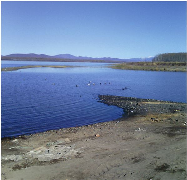 На схеме отмечены две строительные базы, одна – в районе села Нижнетамбовское, о котором речь пойдет ниже. Эта строительная база была предназначена для обеспечения возведения Амурского завода азотных удобрений. Сам же завод, согласно плану, отстоял от берега Амура на 12 километров, а его водосброс был запланирован в районе впадения в Амур реки Быстрая. В этом месте на Амуре расположен остров Нижнетамбовский, и между ним и левым берегом Амура находятся так называемые зимовальные ямы, в которых обитает амурский осетр (Acipenser schrenckii), поэтому водосброс предполагали сделать ниже по течению.