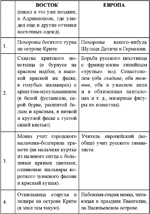 И все в этом роде. Потом, проведя по странице моей вертикальную черту, я представил следующий ряд параллельных антитез для русских художников, которых звал в Турцию: