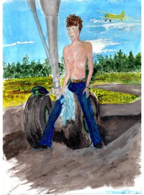Полетели мы, как-то в Коровино, оно же Быково через Котлас. Лето. Я даже думаю, что июль. Очень жарко было. В Коровино-Быково ветер дует поперек полосы больше, чем нам можно, т.е. больше 12 метров и мы сидим, ждем, когда же он ослабнет или хотя бы на встречный подвернет, чтобы мы вылететь смогли. Лично я сидел в черных носках, но, сняв рубашку, под правым крылом (правильно: под правой консолью крыла) на колесе основной стойки шасси и загорал. Я просто никому не мог мешать, потому что, никого вокруг не