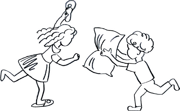 – Ну вот ты лежишь на диване на подушке, у тебя нет меча и пистолета, но можно биться подушкой. Или, если нет подушки, тапком. Даже носками можно биться!