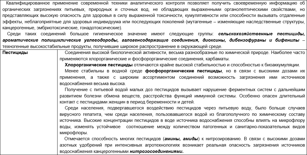 Санитарно-токсикологическая характеристика химических загрязнений питьевой воды
