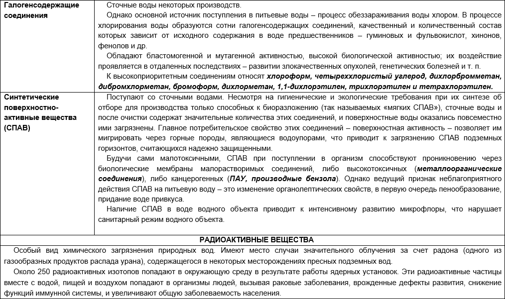 Таковы последствия присутствия в природной/питьевой воде тех или иных загрязняющих веществ для здоровья человека.