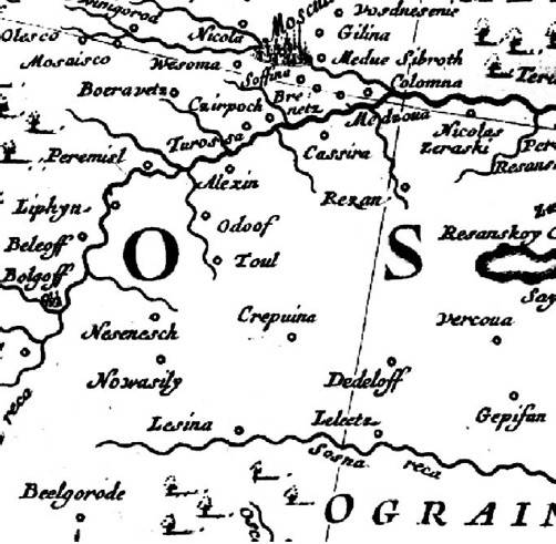 Карта Южной части Московии по оригиналу Исаака Массы. Из атласа Блау, Амстердам, 1640-70 г. (фрагмент)