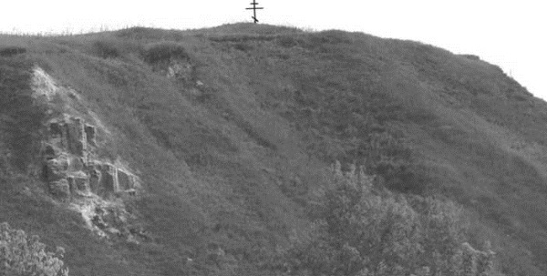 До недавнего времени археологи эту Братскую могилу почему-то считали просто насыпью, несмотря на то, что со стороны обрыва и в осыпях ясно видны были человеческие кости в большом количестве. Но этот курган обозначен на картах XVIII в. как захоронение. Откуда оно, при ближайшем рассмотрении видно, что захоронения людей произведены на разной глубине от 40 см до 2 м 50 см, следовательно, захоронения производились в разное время. В самом начале, когда здесь в 1552 году появились ратные люди, видимо, хоронили всех погибших, потом народ обжился, семьями обзавелся, появились церкви и кладбища, а на этом почетном месте хоронили достойных людей, как знак особого почета и уважения. По свидетельствам очевидцев и «черных» археологов, здесь особых находок не было: нательные кресты, сабля с остатками золотой насечки, косы волос сантиметров 20–30. Последнее позволяло утверждать местным жителям, что данные захоронения – татарские, и отчасти это справедливо, но также нужно помнить о том, за что запорожские казаки назывались хохлами и что хохол это не только прядь волос, но для удобства его сплетали в косу, потом мода изменилась и чубы в косы уже не заплетали, а что они там жили не вызывает сомнения, они постоянно упоминаются в документах под именем черкасс. Находили там и энколпионы – кресты нательные, которые носили казаки до XVI в. А «черным археологам», которые, копошась яко черви в святых костях своих предков и ищут золото, хочу сказать, предки наши, даже царей, хоронили в одних рубахах, и только некоторым очень заслуженным людям в могилу клали их личное оружие, а все остальное оставалось людям. Но здесь есть золото, которое правда не доступно вашим скудным мозгам, золото душ, золотые руки которые защитили свой род и создали Великую Россию, золотые головы, золотые сердца, а это гораздо больше, нежели куски презренного желтого металла.