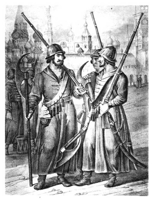 А в казне зелья 21 пуд с полупудом, а свинцу 4 пуда, а ядер полуторных пушек 270 ядер железных, а волконетных пищалей 327 ядер железных, а сороковых пищалей 730 ядер железных, а затинных пищалей ядер железных 1600.