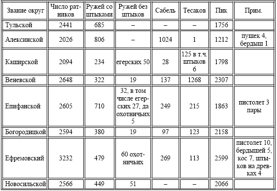 Ведомость количества ратников Тульской милиции и их вооружения. 1807 г.