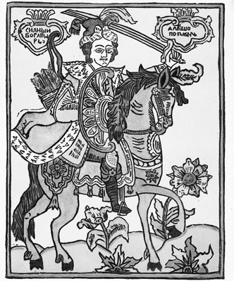 Сильный богатырь Алеша Попович. Гравюра на дереве. XVIII век[36]