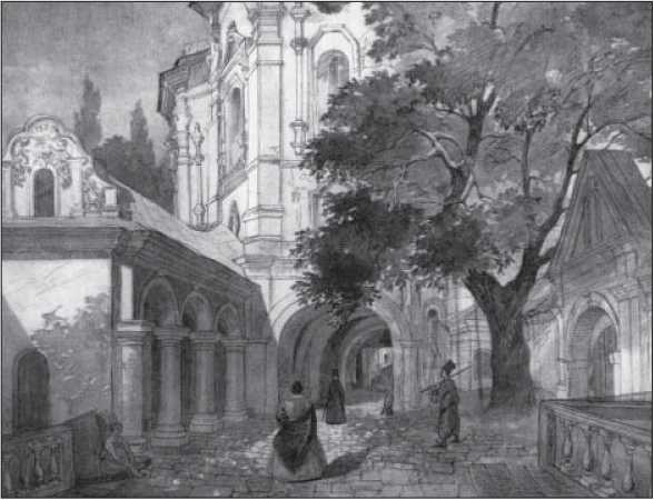 Я с приезда поселился на Житомирской улице, в доме бывшего секретаря комиссариатской комиссии Запорожского (тоже в своем роде антика), но, совершенно одинокий и предоставленный самому себе, я постоянно тяготел к Печерску, куда меня влекли лавра и пещеры, а также и некоторое еще в Орле образовавшееся знакомство.