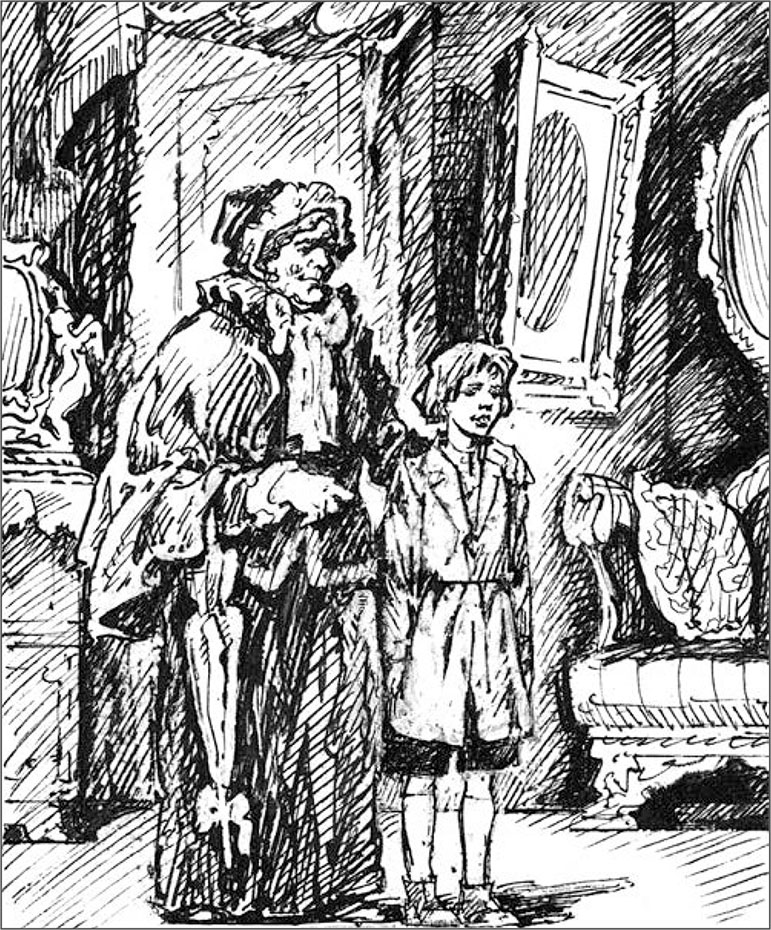 Мальчик потянулся к ногам кровати и, прищурив глаза, посмотрел по направлению к дверям, через которые вошла тетка, и успокоился.