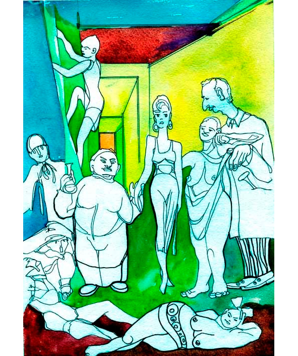 Никто не заметил, как он ушёл. Все продолжали в оцепенении смотреть на стены, включали и выключали свет, некоторые пробовали картины на вкус.