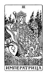 Карта символизирует активную женскую энергию, плодородие, земной рай, активную материальную и созидательную энергию. Императрица создает хорошую семью, олицетворяет материнство и внешнюю красоту.