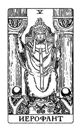 На карте изображен Верховный Жрец, он же папа римский. Он олицетворяет внешнюю, общественную, экзотерическую сторону знаний, в отличие от Верховной Жрицы.