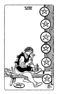 Рис. 2. Образы на Восьмерке и Шестерке Дисков на картах Таро Сола-Буска совмещены на Восьмерке Пентаклей Таро Уэйта