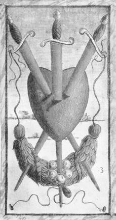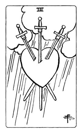 Рис. 3. Тройка Мечей Таро Сола-Буска и Таро Уэйта