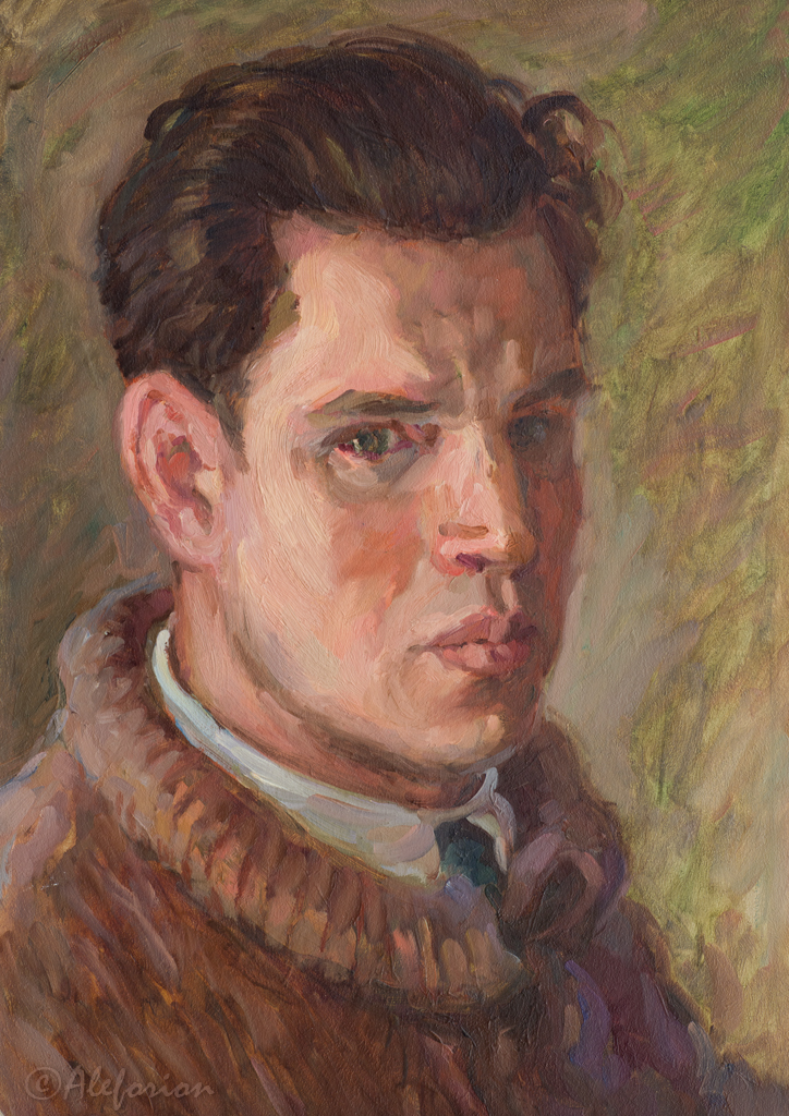Алексей Кокорекин, «Автопортрет», 1938 г., 26,5 х 37 см, картон, масло.