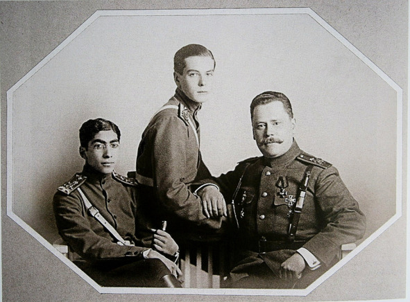 Князь В. Палей (в центре) с сокурсником и преподавателем Пажеского корпуса