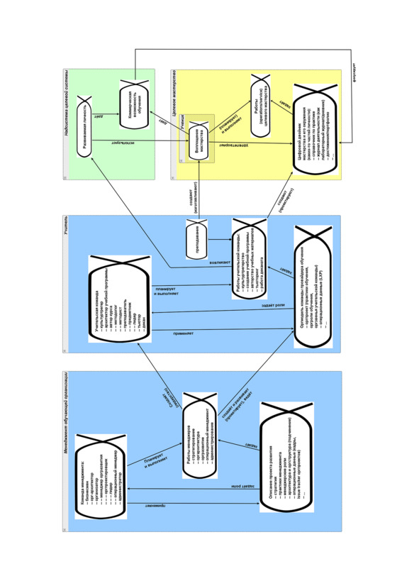 Учитель::создатель (инженер::роль, в данном случае это провайдер обучения, то есть провайдер сервисов учебной программы, семестров, курсов, занятий). Учитель создаёт и развивает целевое мастерство в ученике::личность (ученик – это роль/«функциональная часть личности» в проекте обучения).