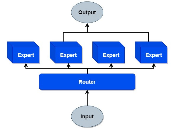 В текущем подразделе мы приводим пример разговора про методы работы систем AI: что там делают подсистемы и подсистемы подсистем, обмениваясь данными, это dataflow представление. Центральное место в функциональном разбиении системы AI занимает искусственная нейронная сеть (ANN, artificial neural network), подсистема системы экспертов (несколько нейронных систем объединяются как «эксперты» в смеси экспертов, MoE, mixture of experts)49: