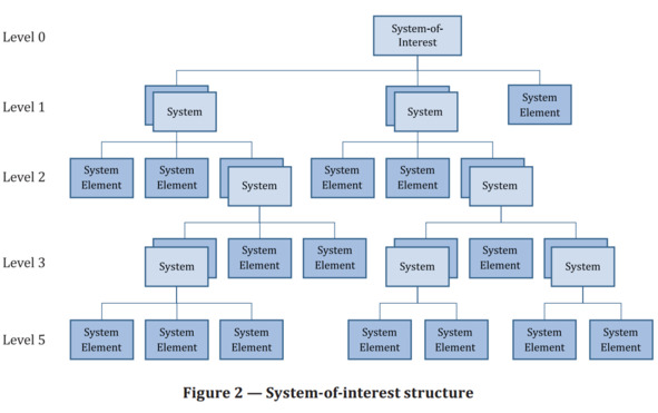 В основополагающем стандарте системной инженерии ISO 15288:2023 вообще не говорят обо всех этих видах систем, подчёркивая их одинаковость: различают только целевую систему (system-of-interest) как вершину системного разбиения. «Выше по системным уровням» идут сразу «системы в окружении», которые рассматривают вообще отдельно, включая саму надсистему. В составе целевой системы в этом стандарте только системы (если у этих систем будут части) и системные элементы (elements, если было принято решение не рассматривать их части, а только ограничиться существованием этих системных элементов как целых, являющихся частями их надсистем).