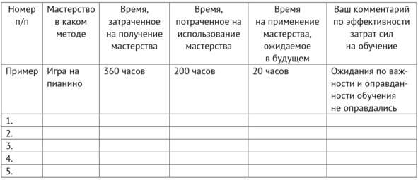 Возьмите пять видов мастерства, которые отличают вашу личность и оцените эффективность их получения: