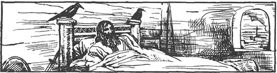 Над ложем царя сели прилетевшие со двора оба ворона Драгомира. Давно не приходилось им летать в дальние страны. Светлое облако наполнило весь покой. Когда оно рассеялось, среди него стояли обнявшись, Богучар с Драгомиром. Вороны отлетели прочь от царя и сели на пол у ног того и другого призраков. Богучар заговорил первый: