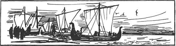 Он созвал жену, детей, дротов, прорицательниц и дружинников, как береговых, так и морских. Совершили жертвоприношение в храме Тора, затем полдня пировали в царском дворце. Красивые, нарядные девы, увенчанные цветами[54], разносили кушанья и пития. Мед, пиво и вино заморское лилось рекой. Царь сидел мрачный. Он думал про себя: