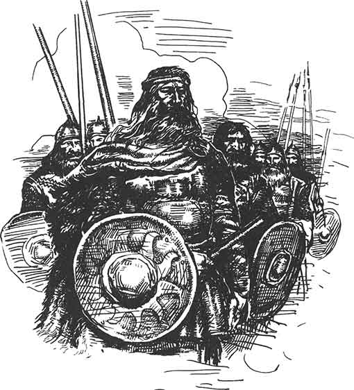 Пикой чертитьсяВремя приспело:Конунгу[53] срам на одре угасать.Кровью покрытьсяТрудное ль дело!Так же как жить, нам легко умирать.Скоро съехались все сыновья царя, княжившие в разных уделах земель квенов, саксов и иотов.